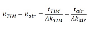 En soustrayant les deux résistances thermiques, on obtient la relation suivante pour la variation attendue de la résistance thermique vers l’environnement grâce à l’ajout du matériau d’interface thermique :
