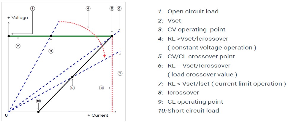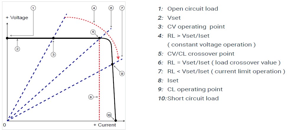 Installer une alimentation plus puissante pourrait résoudre ce problème, mais ce n’est pas toujours possible en raison de contraintes d’espace ou de budget. Dans ces cas, la limitation de courant « constante » est une meilleure option. Lorsque le courant maximal est dépassé, la tension de sortie baisse très brièvement, mais le courant requis est fourni, et la tension se rétablit immédiatement à la valeur demandée (par exemple 24 VDC).