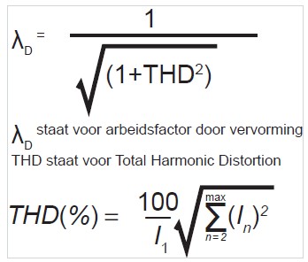 La puissance absorbée sur le réseau électrique est le rapport entre la puissance de sortie et le produit du rendement par le facteur de puissance. Ce facteur de puissance est lui-même le produit de deux facteurs : celui lié au déphasage entre la tension et le courant (par exemple, au démarrage quotidien de moteurs lourds à forte charge inductive) et celui lié à la déformation du courant absorbé.