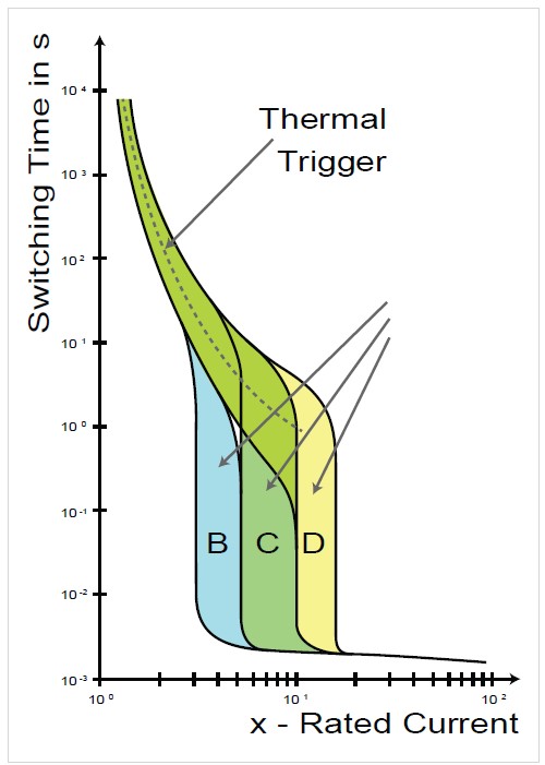 L’utilisation de disjoncteurs à déclenchement retardé (« B », « C » ou « D ») permet de supporter plusieurs fois le courant nominal pendant un court instant. Un disjoncteur « B » supporte 3 à 5 fois le courant nominal, adapté aux appareils domestiques courants. Les disjoncteurs « C » tolèrent 5 à 10 fois le courant nominal, recommandés pour des courants d’appel moyens ou plusieurs alimentations sur un même circuit. Les disjoncteurs « D » sont conçus pour les environnements industriels.