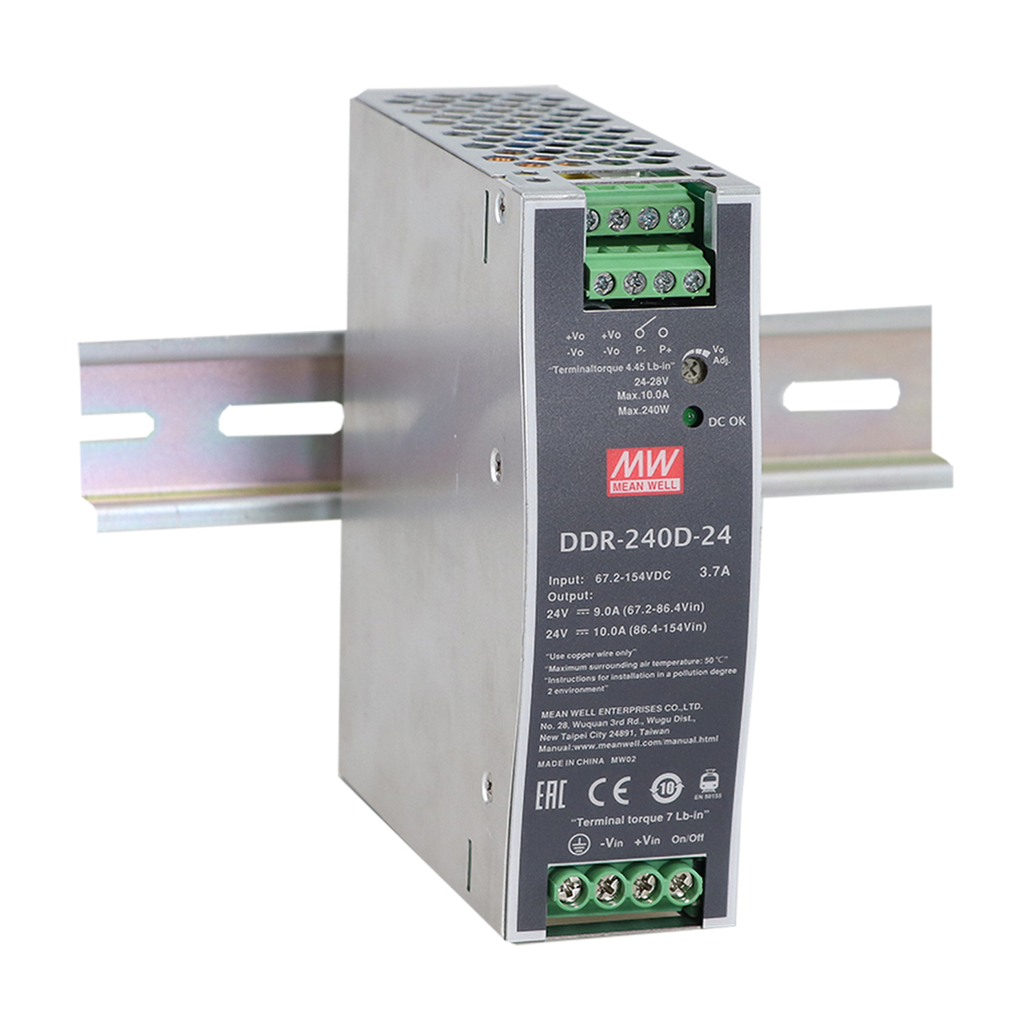 DC-DC Ultra slim Industrial DIN rail converter; Input 16.8-33.6Vdc; Single Output 48Vdc at 5A