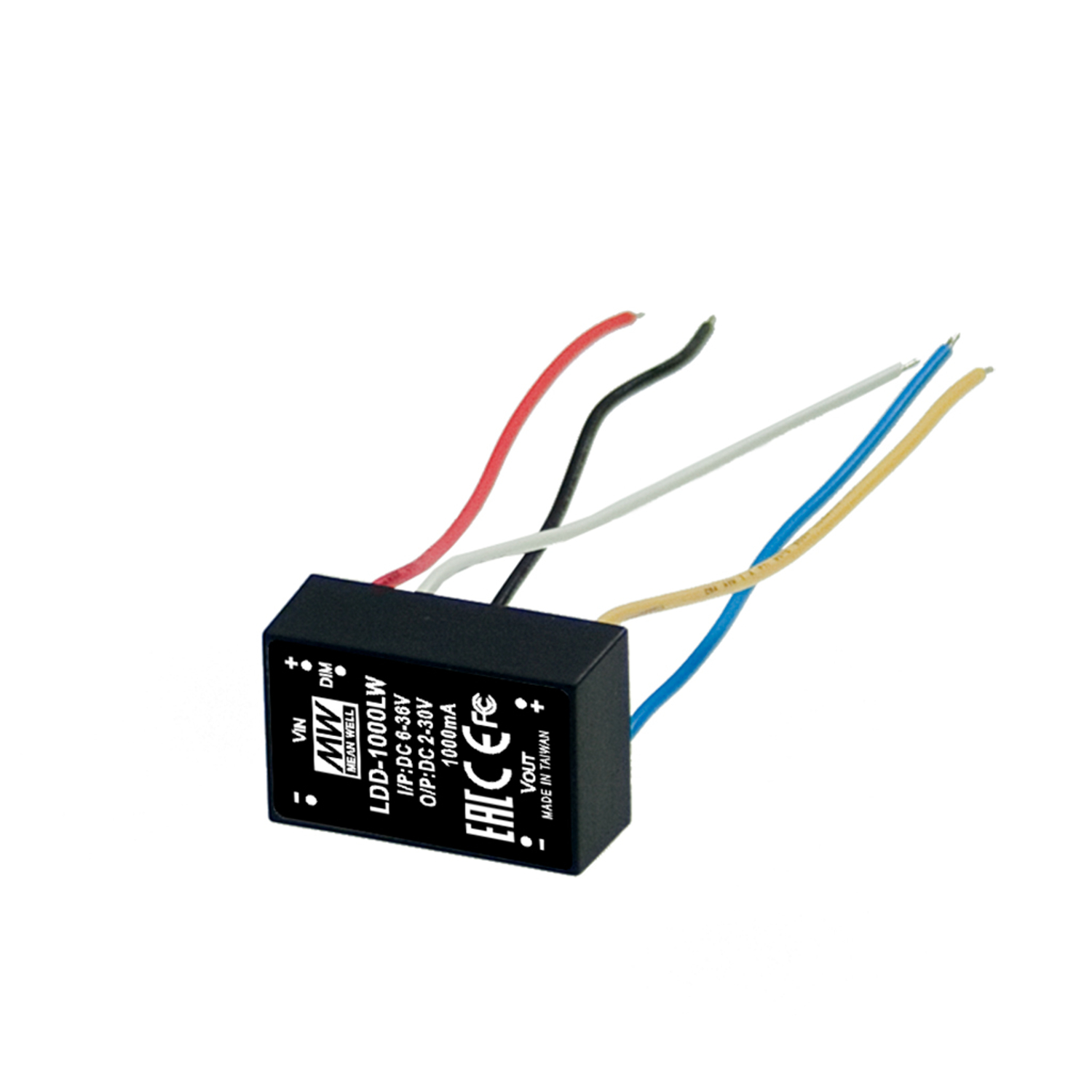 DC-DC Step down LED driver Constant Current (CC); Input 9-36Vdc; Output 0.3A at 2-32Vdc; Wired in- output; Dimming with PWM and remote ON/OFF